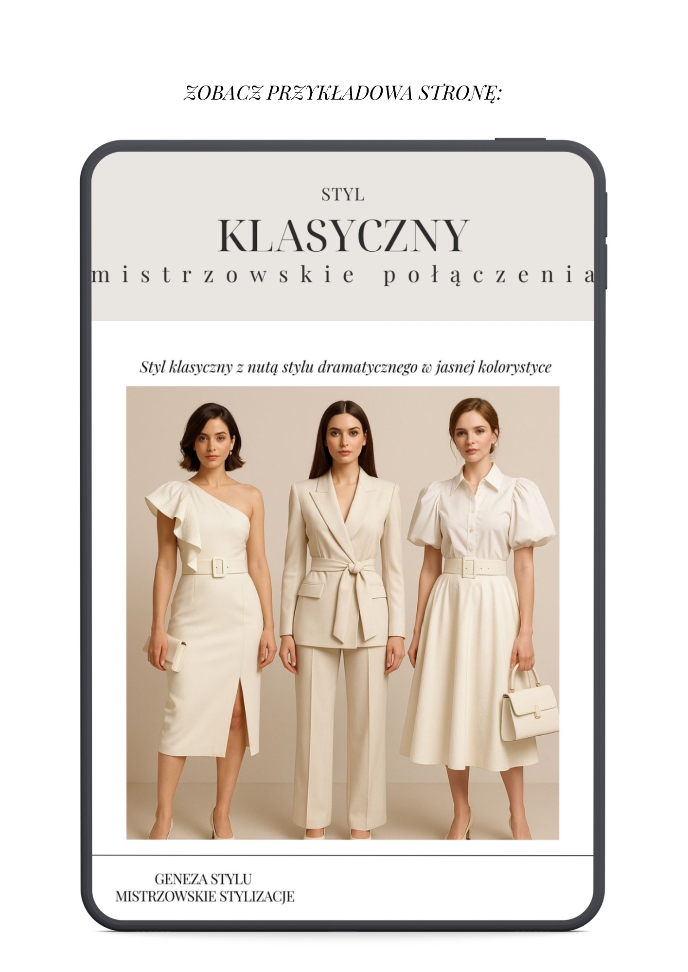 Całość została przygotowana z dbałością o każdy szczegół, aby każda strona była dla Ciebie piękną, modową podróżą.Dodatkowo, te treści nigdy się nie zdezaktualizują! Możesz zaglądać do nich kiedy tylko będziesz mieć ochotę na stylistyczne inspiracje.