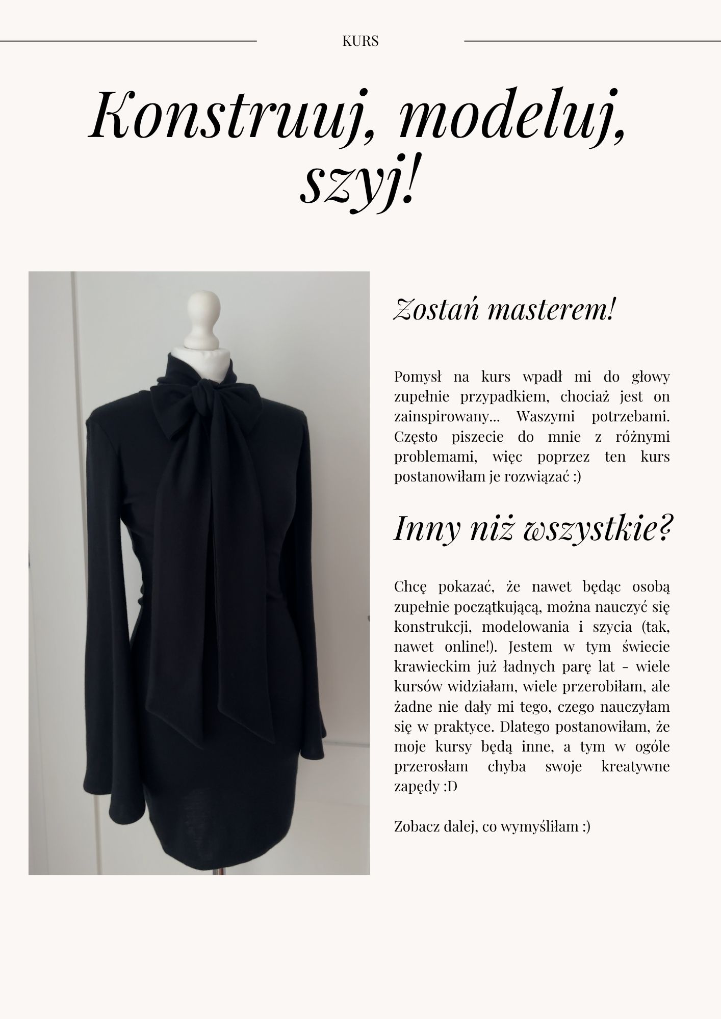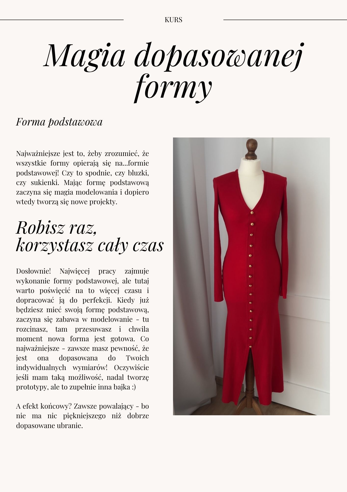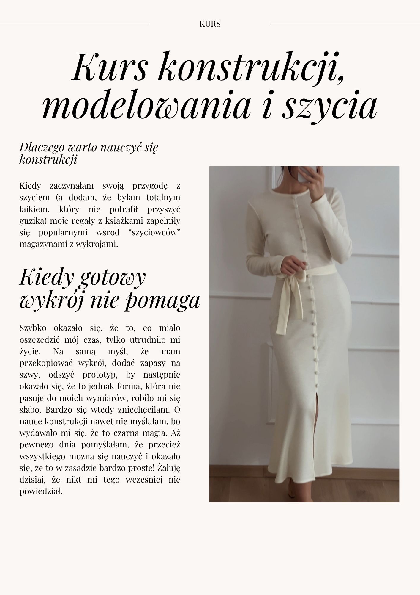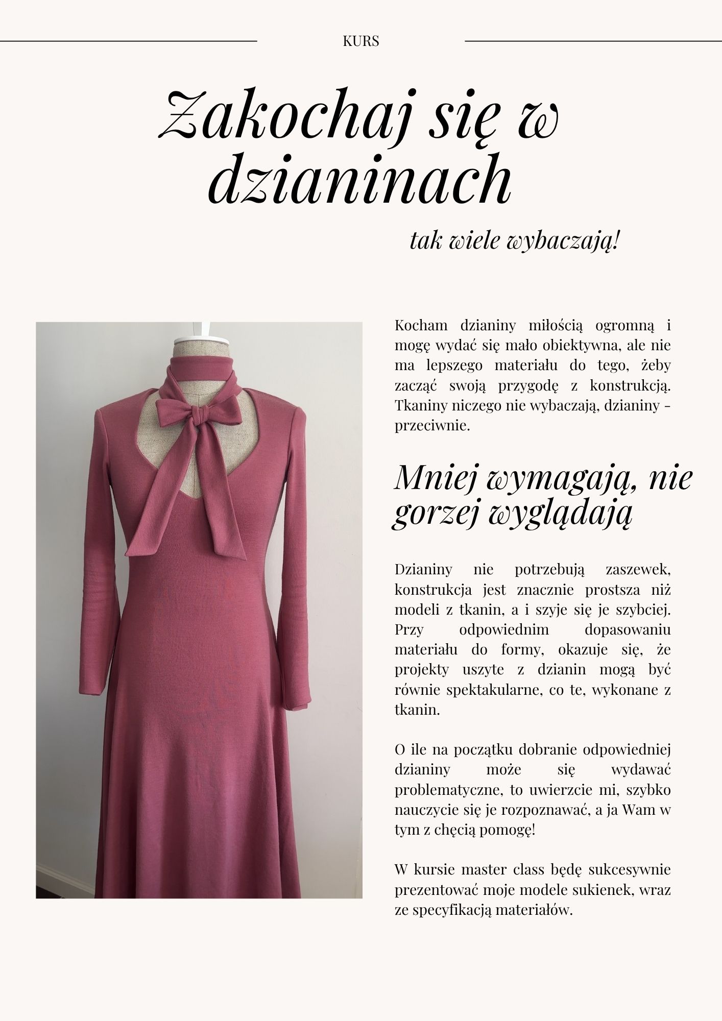 Zostań masterem projektowania! Ten kurs to niesamowita okazja do tego, żeby nauczyć się konstrukcji oraz modelowania i tworzyć przepiękne dzianinowe bluzki, spódnice i sukienki na swoje indywidualne wymiary.