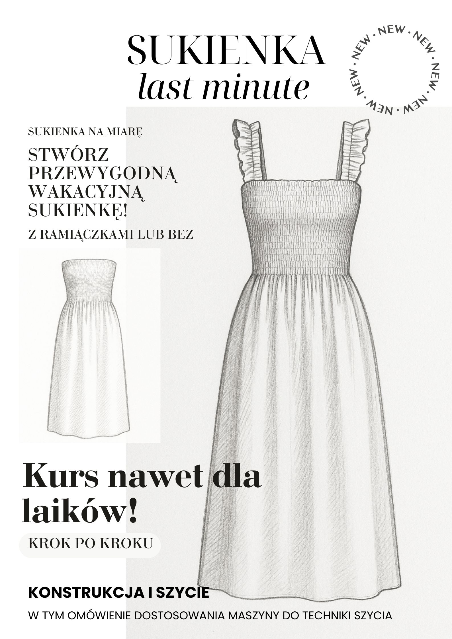 – wykonywać konstrukcję i szyć super ekspresową sukienkę, która będzie idealna na upały, na plażę, na zwiedzanie czy wygodny home office 🙂